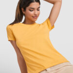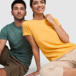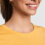 Camiseta manga corta ligeramente entallada con acabado vigoré. Cuello redondo en punto canalé 1×1 con cubre costuras interior. Costuras laterales.