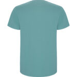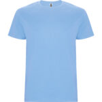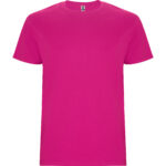 Camiseta tubular de manga corta. Cuello redondo con elastano. Costuras laterales en tallas de niño.