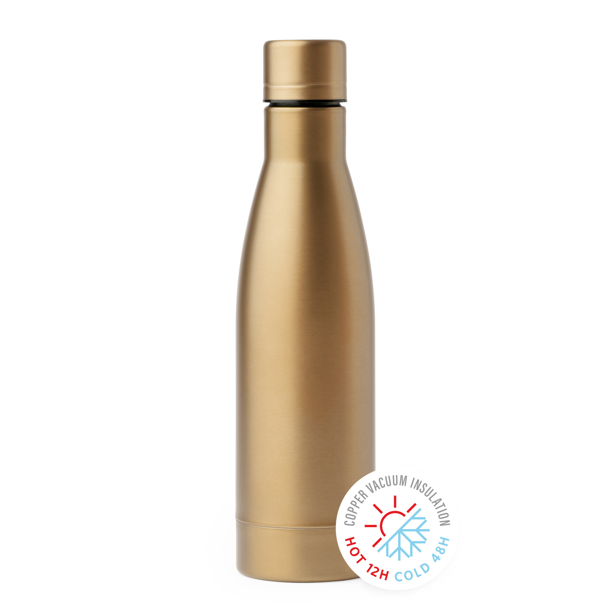 Fantástico bidón térmico de acero inoxidable 304, con el que mantener la temperatura justa de tus bebidas. Doble pared con aislamiento de cobre. Capacidad 500 ml. Color blanco apto para sublimación.