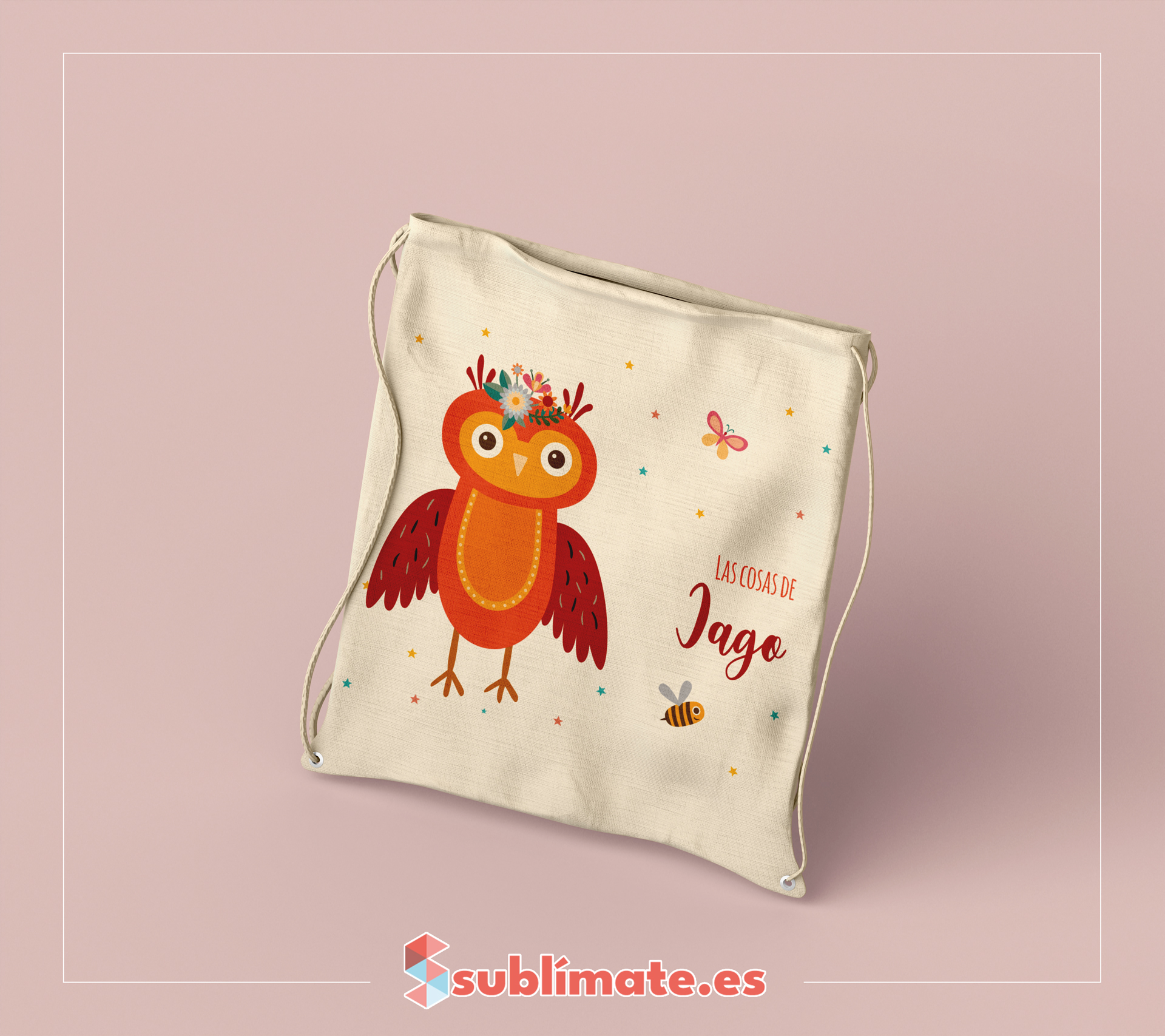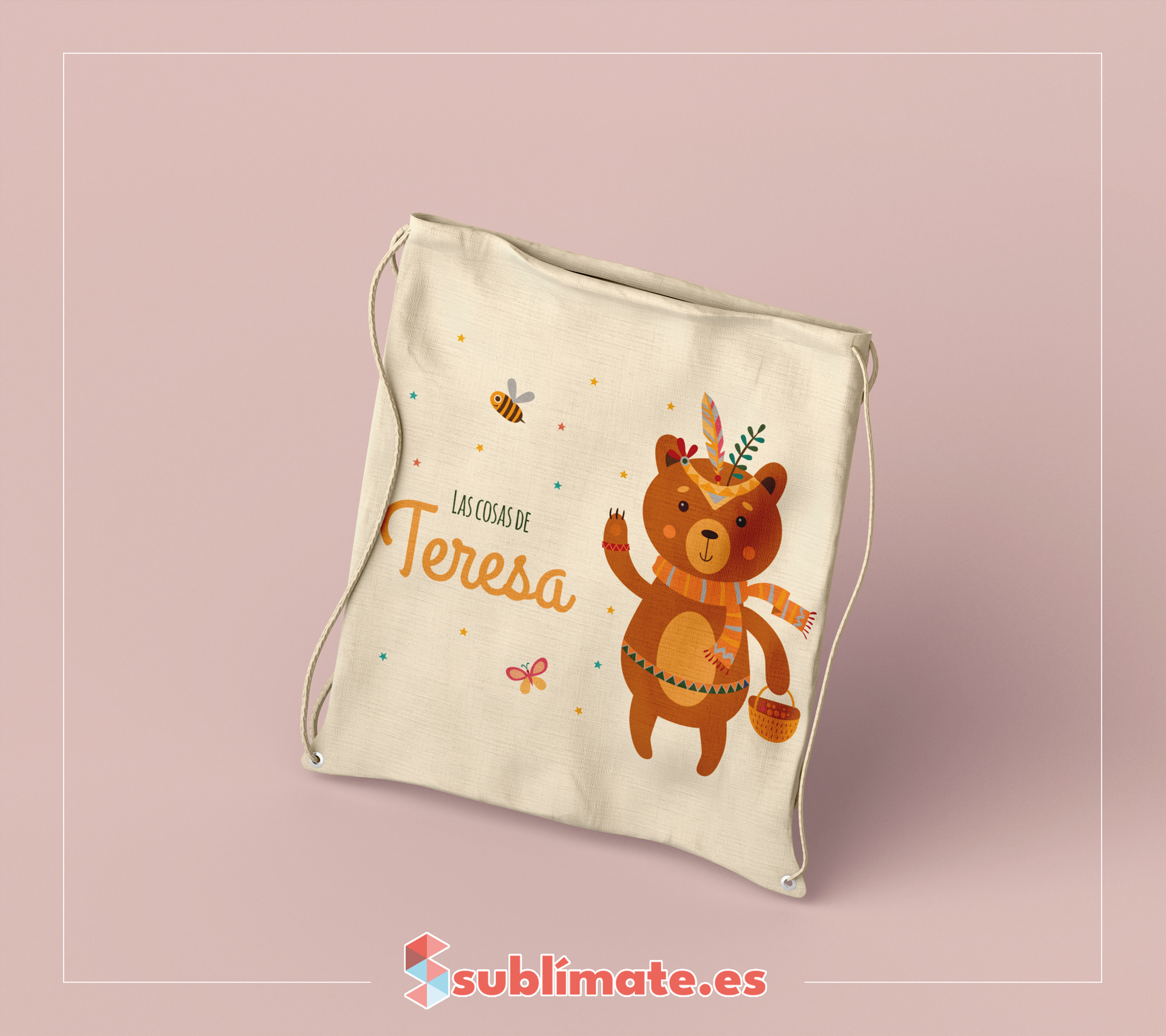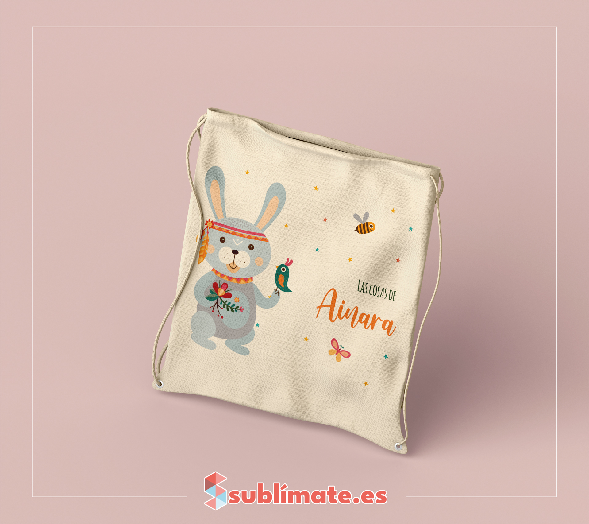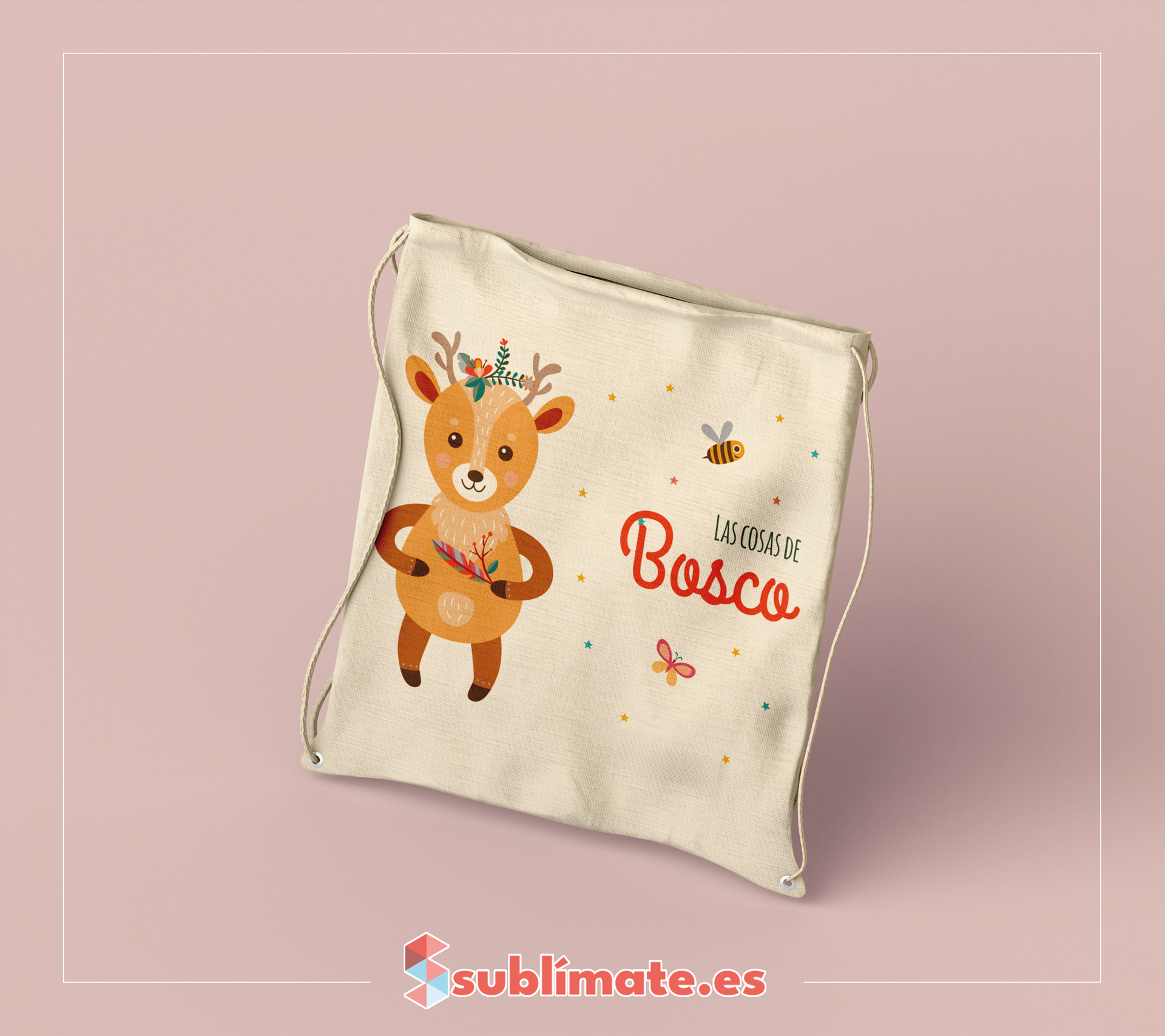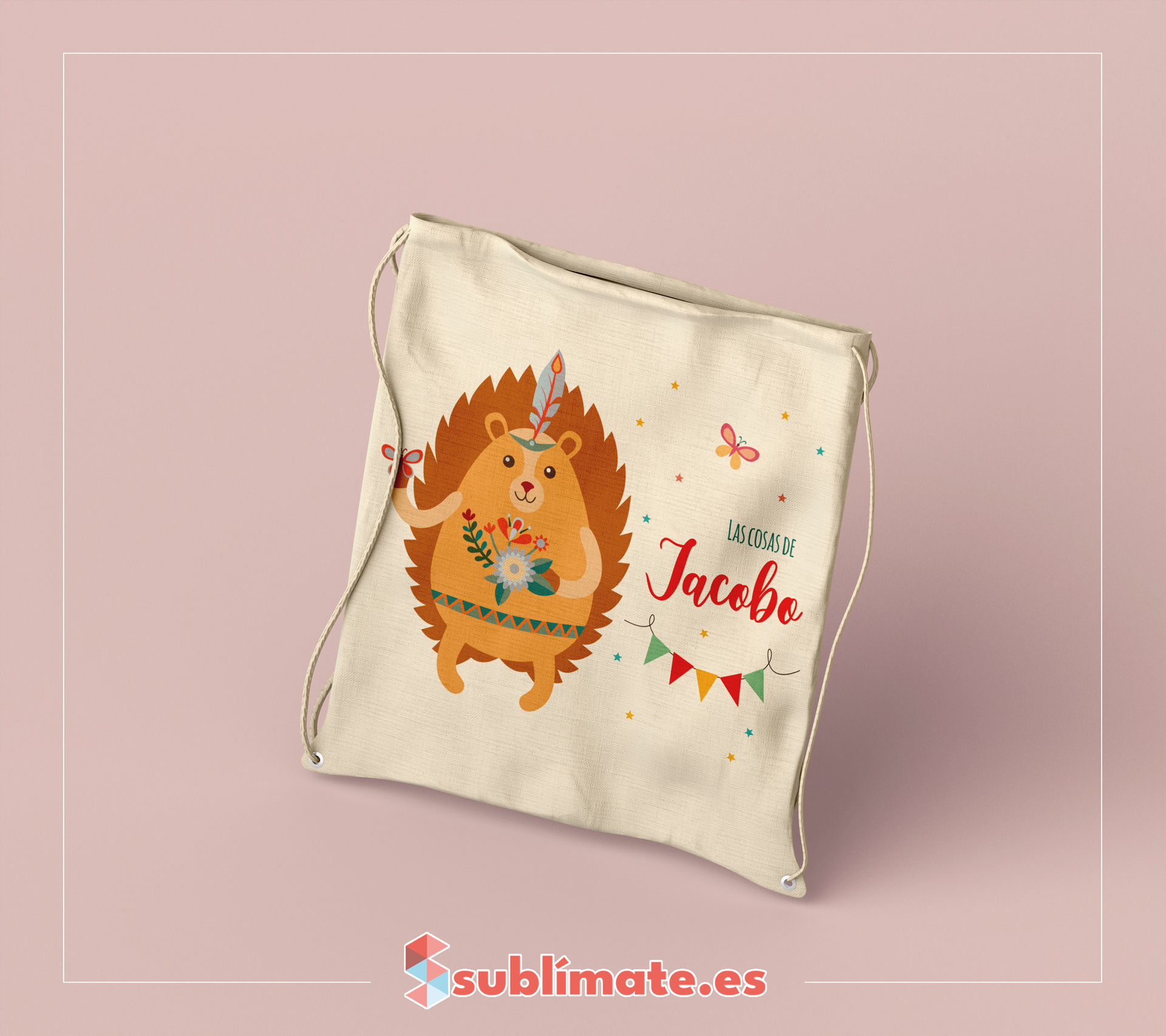 Esta preciosa Mochila de cuerdas Infantil Personalizada para niños, será indispensable para guardar las cosas de tu hijo/hija.