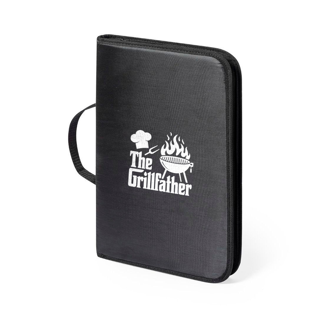 Este set de barbacoa personalizado es el lienzo perfecto para tu creatividad. Aplicamos grabado láser sobre los mangos de madera para lograr un acabado eterno que no se borra con el uso. Por otro lado, la funda de poliéster se personaliza mediante transfer DTF, permitiendo logotipos o nombres con una viveza de color excepcional. Por consiguiente, es la opción preferida por empresas que buscan merchandising de lujo o para familias que desean un detalle inolvidable en bodas y comuniones.