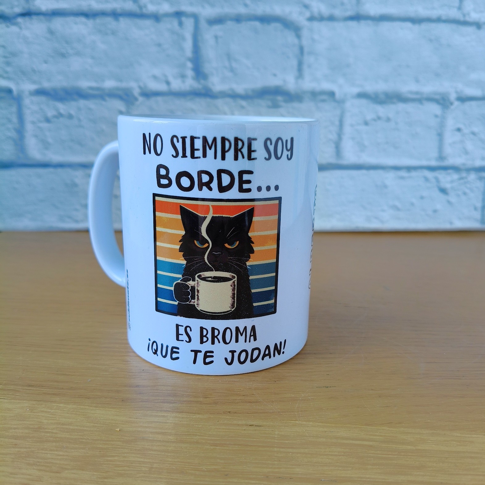 Taza Gato Negro Frase Sarcástica – Humor y Café en Cerámica